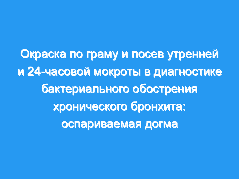 Бактериологические результаты микроскопического и культурального исследований утренней и 24-часовой мокроты были сопоставлены в попытке оптимизировать диагностику бактериальных обострений хронического бронхита.
