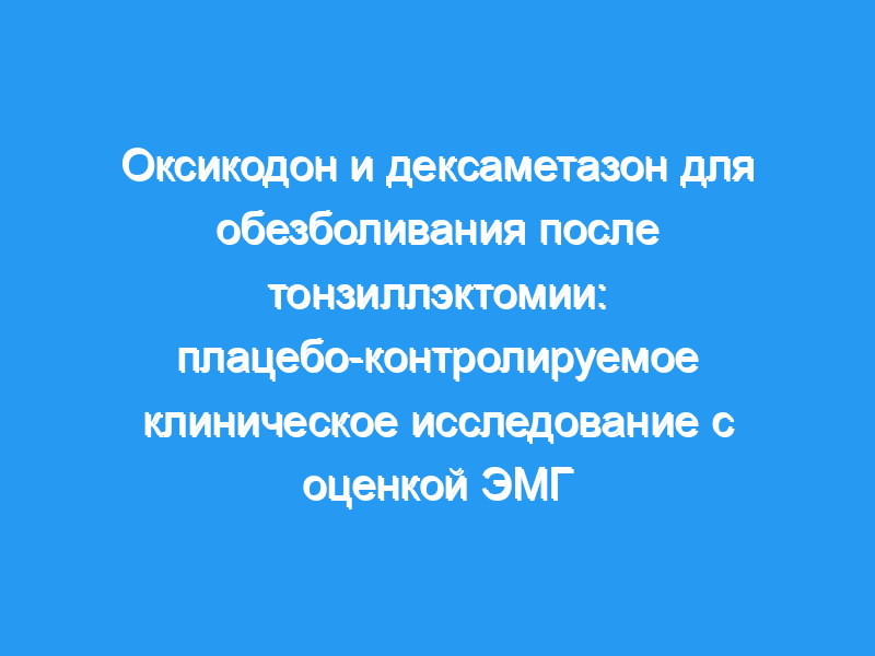 Применение оксикодона значительно уменьшает послеоперационную боль. Применение дексаметазона после тонзиллэктомии целесообразно из-за снижения послеоперационной заболеваемости, в то время как уменьшение послеоперационной боли является вторичным по отношению к уменьшению отека. СЭМГ может быть использована в качестве дополнительной меры болевого поведения путем оценки мышечных реакций на боль и на обезболивание.