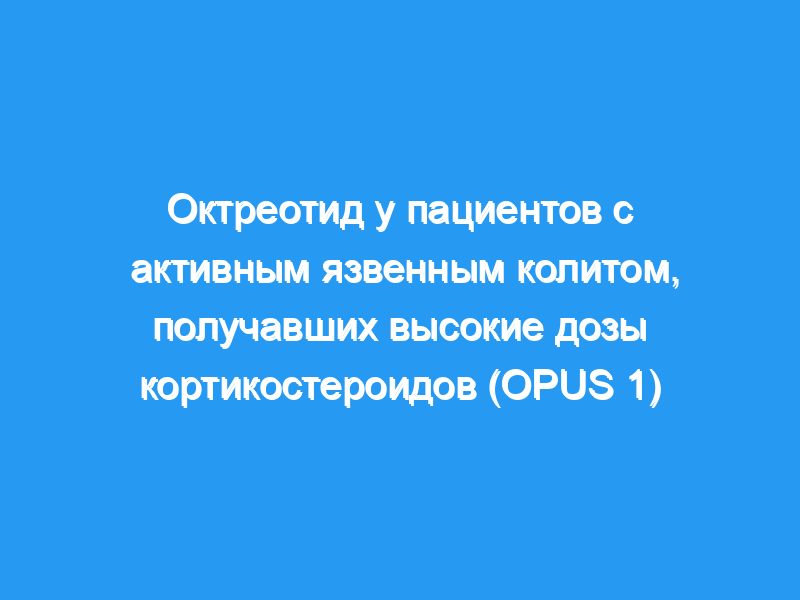 В многоцентровом двойном слепом плацебо-контролируемом исследовании все пациенты получали пероральный 5-АСК (1,6-2,4 г в день) и высокие дозы кортикостероидов (сниженные с 60 до 80 мг в день). Они были рандомизированы для получения подкожного плацебо (n = 22) или октреотида по 500 мкг (n = 20) трижды в день в течение 21 дня. Клиническая и эндоскопическая активность заболевания, гистологические и лабораторные показатели были получены в течение периода исследования.