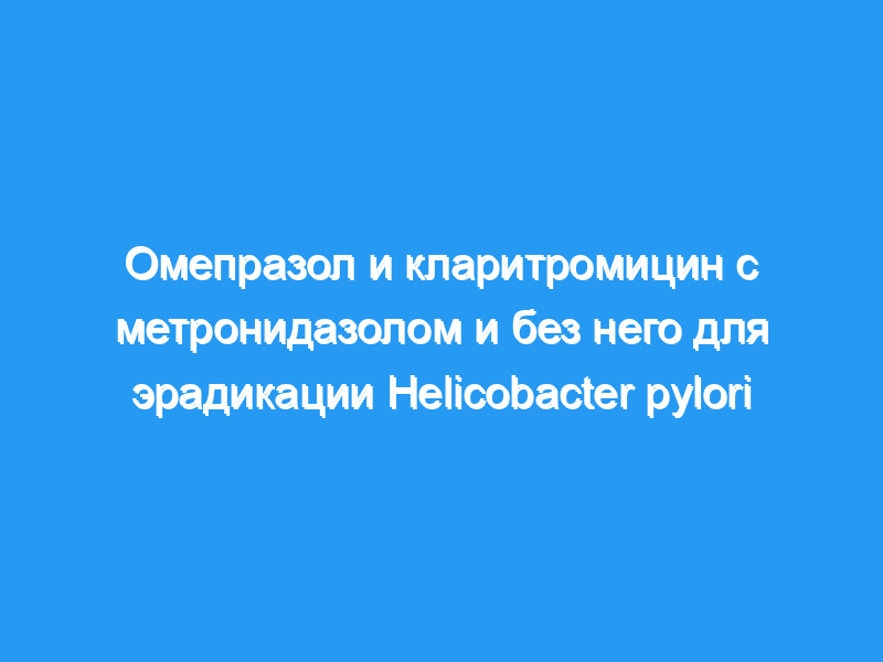 Шестьдесят пять взрослых пациентов с гистологически подтвержденной инфекцией H. pylori были рандомизированы в этом открытом когортном исследовании на 2 недели, низкие дозы, два раза в день лечение омепразолом 20 мг и кларитромицином 250 мг (OC) (n = 31) или OC плюс метронидазол 500 мг (OCM) (n = 34). По крайней мере, через 4 недели после лечения статус H. pylori оценивали с помощью гистологии (четыре биопсии желудка, по две из антрального отдела и тела).