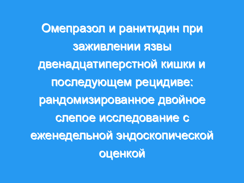 чтобы изучить эффективность применения стандартных и низких доз омепразола в заживлении язвы двенадцатиперстной кишки, 270 больных с эндоскопически активная язва двенадцатиперстной кишки были рандомизированы на получение Омепразол 10 мг или 20 мг каждый день или Ранитидин 150 мг два раза в день, с использованием двойного манекена технол.были проспективно полученные п>