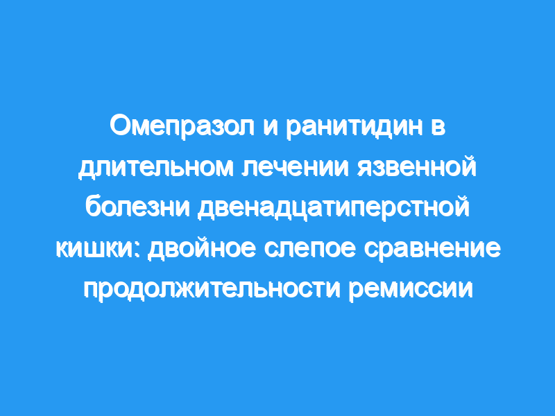 Их лечили омепразолом в дозе 20 мг каждое утро в течение четырех или восьми недель, а после выздоровления случайным образом распределяли на поддерживающее лечение либо омепразолом в дозе 20 мг каждое утро, либо ранитидином в дозе 150 мг перед сном в течение шести месяцев.