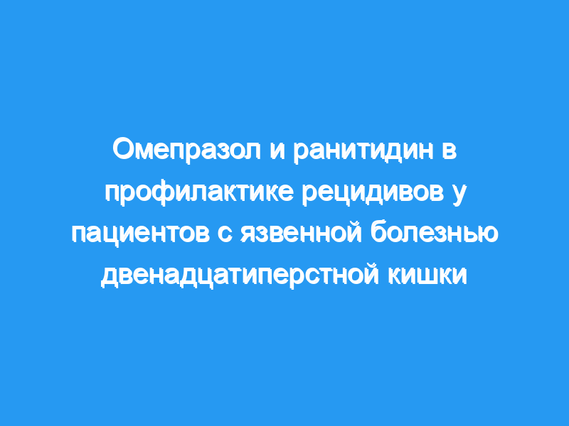 Хотя эрадикация Helicobacter pylori имеет первостепенное значение при начале лечения, также важно иметь стратегию для пациентов, которые являются H. pylori-негативными, не демонстрируют эрадикацию или имеют тенденцию к повторному инфицированию или рецидиву. Пациенты и методы: В двойном слепом клиническом исследовании с параллельными группами, в котором приняли участие 928 пациентов (из 70 центров в 16 странах) с язвенной болезнью двенадцатиперстной кишки, у которых после кратковременного исследования симптомы ослабли и эндоскопически были подтверждены зажившие язвы, 308 были рандомизированы на прием омепразола в дозе 10 мг утром, 308 — в принимать омепразол по 20 мг утром и 312 принимать ранитидин по 150 мг перед сном в течение 12 месяцев. Симптомы оценивались каждые три месяца, и эндоскопия повторялась через три, шесть и 12 месяцев или чаще, если на это указывало повторение симптомов. Скрининг безопасности включал базальную концентрацию гастрина в сыворотке крови и гистопатологию слизистой оболочки желудка.