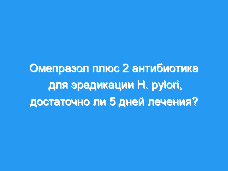 Комбинация омепразола, кларитромицина и метронидазола в течение всего пяти дней обладает высокой эффективностью устранения (примерно 90%), аналогичной той, что была получена в предыдущих исследованиях. исследования с семидневной терапией. Тем не менее, сочетание омепразола, кларитромицина и амоксициллина, вероятно, следует назначать по крайней мере в течение одной недели для достижения оптимальной эффективности уничтожения.