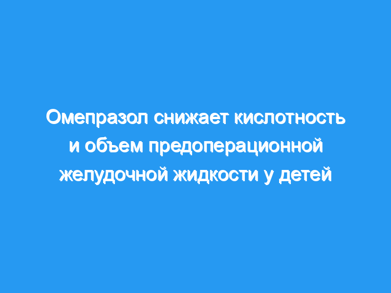 Для изучения влияния перорального приема омепразола на рН и объем предоперационной желудочной жидкости у детей 104 здоровых стационарных пациента в возрасте 4-9 лет были случайным образом распределены на четыре группы (n = 26). Пациенты в группе Омепразол-Омепразол получали две дозы омепразола (20 мг на дозу), пациенты в группе плацебо-Плацебо — две дозы плацебо, пациенты в группах плацебо-Омепразол и Омепразол-плацебо — по одной дозе каждого из двух препаратов mout.
