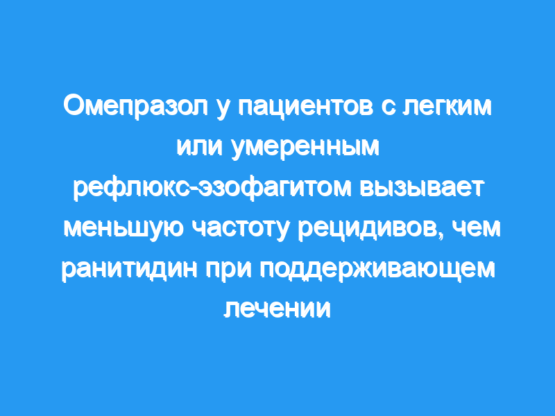 Поддерживающее лечение омепразолом (20 мг один раз в день) является превосходит ранитидин (150 мг два раза в день) в поддержании ремиссии у пациентов с эрозивным рефлюкс-эзофагитом легкой и средней степени тяжести в течение 6 месяцев.