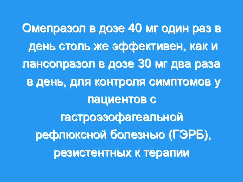 Омепразол в дозе 40 мг один раз в день одинаково эффективен и хорошо переносится, как и лансопразол в дозе 30 мг два раза в день для контроля симптомов у пациентов с ГЭРБ.