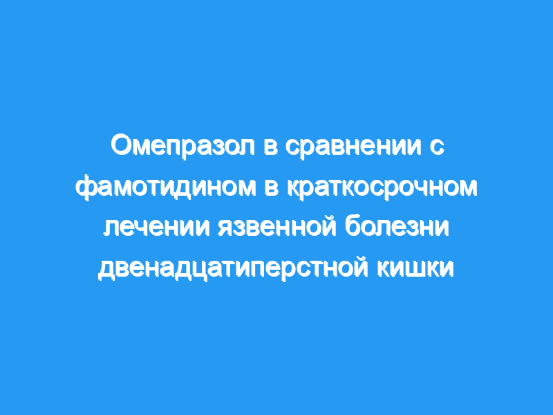 В соответствии с протоколом, показатели заживления язвы двенадцатиперстной кишки при приеме омепразола и фамотидина, подтвержденные эндоскопией, составили 62% (68/109) и 33% (39/117) после 2 недель лечения (Р менее 0,001), 92% (96/104) и 80% (86/108) кумулятивно через 4 недели (Р менее 0,05), и 99% (102/103) и 92% (96/104) через 6 недель (Р менее 0,05) соответственно.