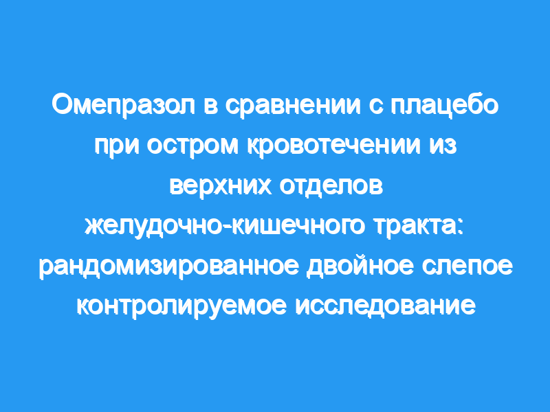 Из 1147 пациентов, включенных в анализ намерения лечить, 569 получали плацебо и 578 — омепразол. Не было обнаружено существенных различий между группами плацебо и омепразола по частоте переливания (302 (53%) плацебо против 298 (52%) омепразола), повторного кровотечения (100 (18%) против 85 (15%)), операции (63 (11%) против 62 (11%)), и смерть (30 (5,3%) против 40 (6,9%)). Однако было отмечено неожиданное, но значительное уменьшение эндоскопических признаков кровотечения из верхних отделов желудочно-кишечного тракта у пациентов, получавших омепразол, по сравнению с теми, кто получал плацебо (236 (45%) плацебо против 176 (33%) омепразола, р менее 0,0001).