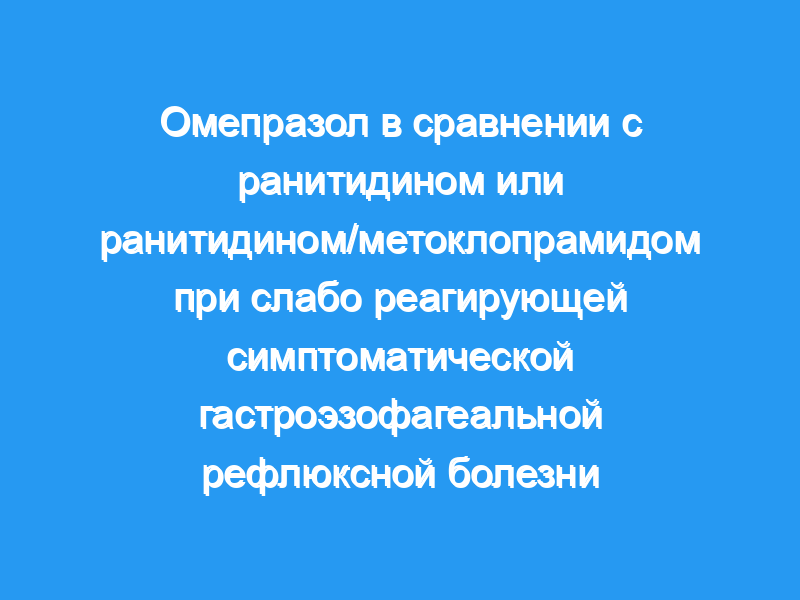 Оценить полное устранение симптомов, заживление слизистой оболочки и переносимость омепразола, ранитидина или ранитидина/метоклопрамида у пациентов с плохо реагирующей симптоматической гастроэзофагеальной рефлюксной болезнью (ГЭРБ).