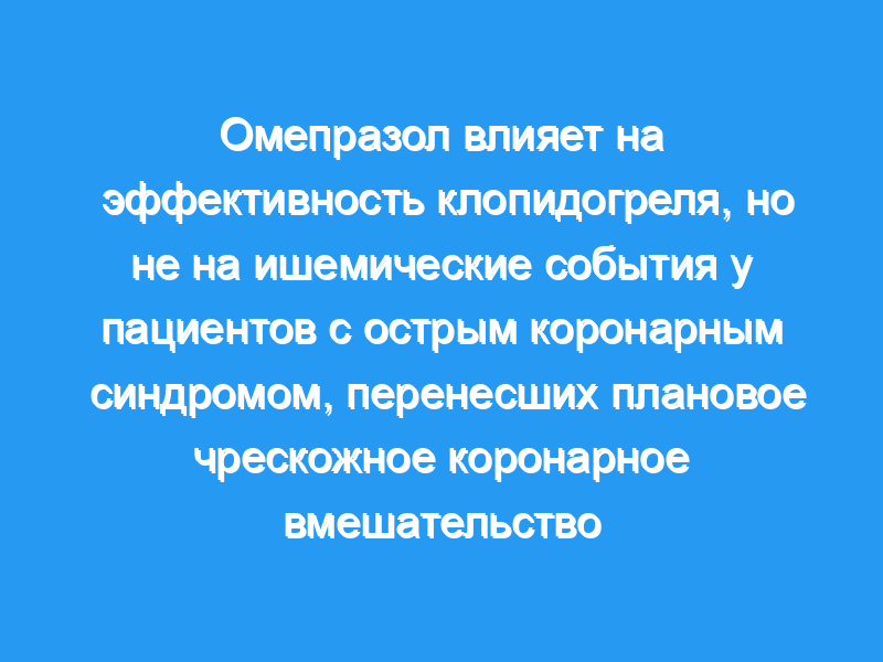 Омепразол значительно снижает эффективность клопидогрела, но не усугубляет ишемические события при ОКС, перенесших ЧКВ. Омепразол даже может уменьшить желудочно-кишечное кровотечение у этих пациентов.