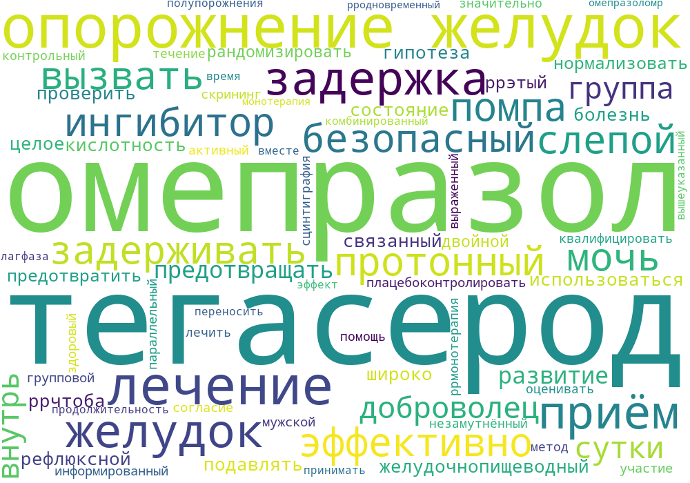Монотерапия омепразолом значительно задерживала опорожнение желудка, выраженное продолжительностью лаг-фазы (P <, 0,007), временем до полупорожнения желудка (P <, 0,003) и задержкой приема пищи в желудке на 60 (P <, 0,002) и 120 мин (P <, 0,04) после его приема внутрь. Тегасерод, принимаемый вместе с омепразолом, эффективно предотвращал развитие вышеуказанных эффектов. Комбинированное лечение было безопасным и хорошо переносимым.