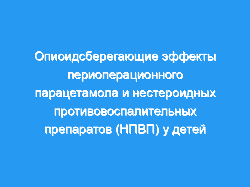 Предпосылки и цели: Периоперационную боль у детей можно эффективно купировать с помощью системных опиоидов, но добавление парацетамола или нестероидных противовоспалительных препаратов (НПВП) может снизить потребность в опиоидах и потенциально улучшить обезболивание и /или уменьшить побочные эффекты.