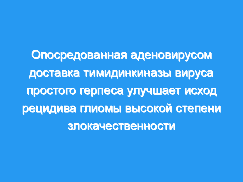 Это рандомизированное открытое многоцентровое клиническое исследование II фазы было проведено для оценки противоопухолевой эффективности и безопасности тимидинкиназы аденовирусной мутантной тимидинкиназы с дефицитом репликации (ADV-TK) в сочетании с приемом ганцикловира у пациентов с рецидивирующей глиомой высокой степени злокачественности (HGG). Пациенты и методы: 53 пациента с рецидивом HGG были случайным образом распределены для получения внутриартериальной церебральной инфузии ADV-TK или обычных методов лечения. Первичной конечной точкой была 6-месячная выживаемость без прогрессирования (PFS-6). Вторичные конечные точки включали выживаемость без прогрессирования (PFS), общую выживаемость (OS), безопасность и клиническую пользу. Это испытание зарегистрировано в Clinicaltrials.gov , NCT00870181.