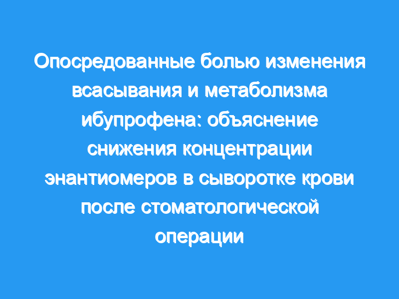 Операция по удалению зуба мудрости привела к существенному снижению концентрации энантиомеров ибупрофена в сыворотке крови и увеличению времени достижения максимальной концентрации. Снижение всасывания и изменение метаболизма являются вероятной причиной этих изменений. Таким образом, пациенты-стоматологи могут испытывать замедленную реакцию и возможную неудачу лечения при приеме ибупрофена для облегчения боли после операции. Наше наблюдение может иметь значение для лечения других заболеваний.