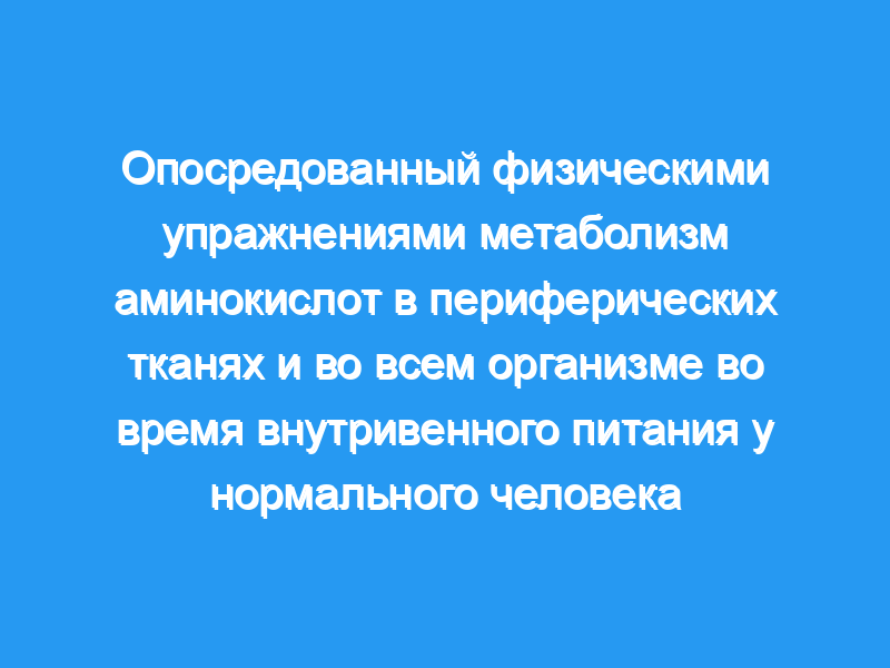 1. Влияние ежедневного режима субмаксимальных физических упражнений на метаболизм аминокислот в организме и периферических тканях во время внутривенного кормления со стабильным весом (ЭКО) оценивали у 11 здоровых добровольцев.