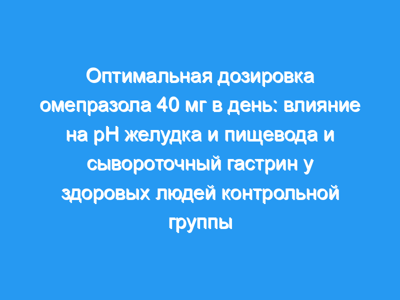 Девятнадцати здоровым добровольцам мужского пола (средний возраст 25 лет) был проведен базовый контроль уровня гастрина в сыворотке крови натощак и 24-часовой амбулаторный комбинированный мониторинг рН дистального отдела пищевода и желудка. Субъекты проходили 7-дневный курс каждого из трех специфических режимов приема омепразола в дозе 40 мг (20 мг внутривенно, 40 мг qAM, 40 мг qPM) с повторным введением рН и гастрина на 6-й день. Режим питания и активности были постоянными для каждого субъекта в течение серии тестов. Лекарства принимались перед едой.