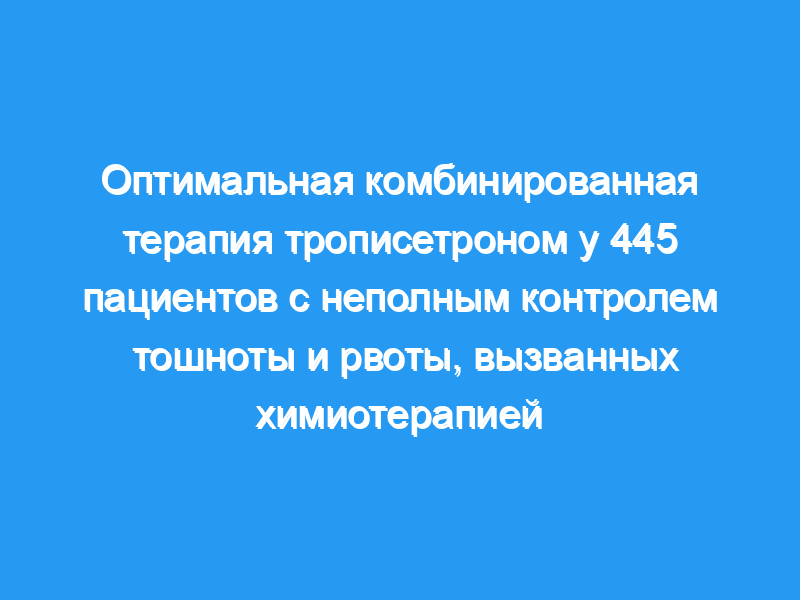 В этом исследовании оценивалась комбинированная терапия на основе трописетрона (Navoban, Sandoz Pharma, Базель, Швейцария) у пациентов, у которых был неполный контроль тошноты или рвоты, вызванных химиотерапией, при использовании трописетрона в качестве единственного противорвотного средства. Пациенты и методы: Одна тысяча семьдесят два пациента, которым было запланировано пройти по крайней мере два идентичных цикла эметогенной химиотерапии, получали трописетрон в дозе 5 мг один раз в день во время их первого курса химиотерапии. Факторную схему 2 × 2 × 2 использовали для оценки трех дополнительных процедур к рекомендуемой дозе 5 мг один раз в день (внутривенно [внутривенно] в 1-й день, перорально в 2-6-й дни) трописетрона в течение 2-го курса у тех пациентов, которые показали неполный контроль тошноты и/или рвоты. в любой день курса 1. Четыреста сорок пять пациентов были централизованно рандомизированы для получения, кроме того, дексаметазона открытого типа (1-й день, 0,2 мг/кг внутривенно, 2-6-й дни, 8 мг перорально) и/или ализаприда открытого типа (1-й день, 100 мг внутривенно и 4 х 50 мг перорально, дни со 2 по 6, 4 х 50 мг перорально) и/или двойной слепой трописетрон (т.е. удвоение дозы до 10 мг один раз в день) или соответствующее плацебо.