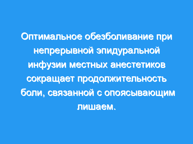 CEI 0,5% бупивакаина плюс IEB ассоциировался с более короткой продолжительностью ZAP и меньшим количеством пациенты с аллодинией более 30 дней по сравнению с IEB плюс обычная инфузия физиологического раствора. Пациентов с высоким риском развития постгерпетической невралгии (ПГН) можно лечить с помощью интенсивной терапии на ранней стадии заболевания, такой как CEI, которая поддерживает эффективную анальгезию и может уменьшить бремя ПГН.