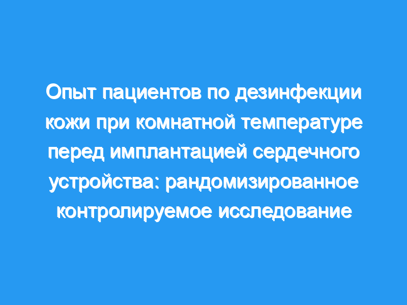Целью этого исследования было описать и сравнить интраоперационный опыт пациентов с использованием предварительно нагретого и комнатной температуры дезинфицирующего средства для кожи. Метод: В этом рандомизированном контролируемом исследовании приняли участие 220 пациентов, которым была проведена имплантация сердечного устройства. Пациенты, которым вводили предварительно подогретый (36°C) или комнатной температуры (20°C) хлоргексидин в 70% этаноле, устно ответили на открытый вопрос относительно их опыта дезинфекции кожи. Результаты оценивались с использованием качественного подхода со сравнительной количественной оценкой.