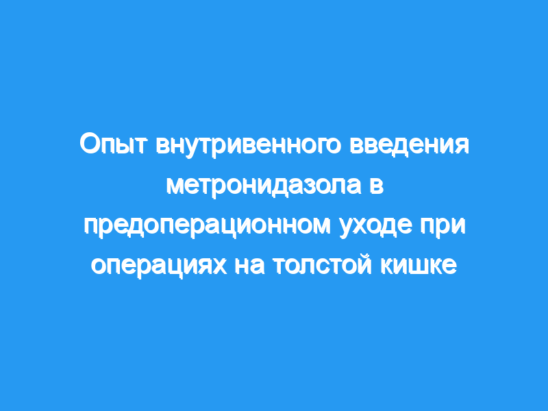 Послеоперационное внутривенное введение метронидазола значительно уменьшает септические осложнения при операциях на толстой кишке, особенно в сочетании с внутривенным введением гентамицина.