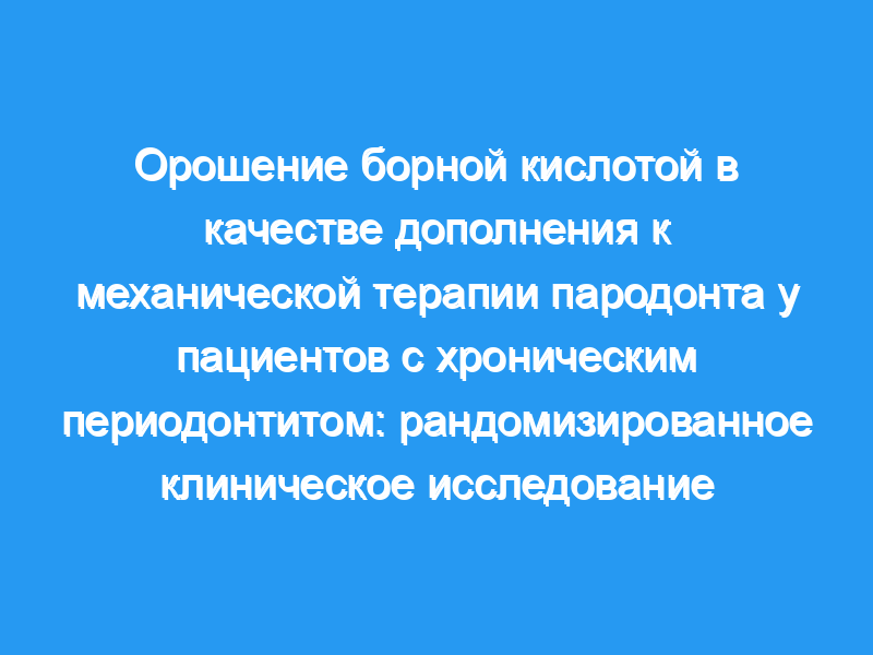 В данном исследовании концентрация борной кислоты составляет 0,75%. Все клинические параметры показали статистически значимое снижение во все моменты времени по сравнению с исходным уровнем во всех группах (P <,0,001). Снижение PD и CAL во всем рту было одинаковым во всех группах во все моменты времени после лечения (P >,0,05). Снижение PD и CAL для умеренно глубоких карманов (PD ≥5 и <7) было больше в группе В по сравнению с другими группами между исходным уровнем и 1 месяцем (P <0,05). Для глубоких карманов (PD ≥7) снижение было сходным в группах B и CHX (P >,0,05). ПБ (в процентах) был значительно ниже в группе В по сравнению с группами CHX и C в первый месяц после лечения (P <,0,001). Показатели GI и PI были значительно ниже в группах B и CHX по сравнению с группой C во все моменты времени после лечения (P <,0,05). Количество Pg, Tf и Td было значительно снижено во всех группах лечения через 1 месяц (P <,0,05). Не было обнаружено статистически значимых различий между группами по микробиологическим показателям в любой момент времени после лечения (P & gt,0,05).