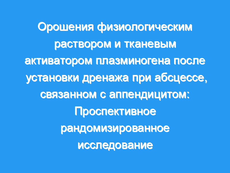 Новые данные свидетельствуют о том, что инстилляция тканевого активатора плазминогена (tPA) безопасна и потенциально эффективна при лечении внутрибрюшного абсцесса. На сегодняшний день отсутствуют проспективные сравнительные данные по детям. Поэтому мы провели рандомизированное исследование, в котором сравнивали орошение абсцесса tPA и орошение только физиологическим раствором. План исследования: После одобрения IRB дети с абсцессом, вторичным по отношению к перфоративному аппендициту, которым для лечения был установлен чрескожной дренаж, были рандомизированы для закапывания дважды в день 13 мл 10% tPA или 13 мл физиологического раствора. Все пациенты получали цефтриаксон и метронидазол один раз в день в течение всего курса лечения. Основной переменной конечной точки была продолжительность госпитализации после установки дренажа. Используя степень 0,8 и α 0,05, был рассчитан размер выборки из 62 пациентов.