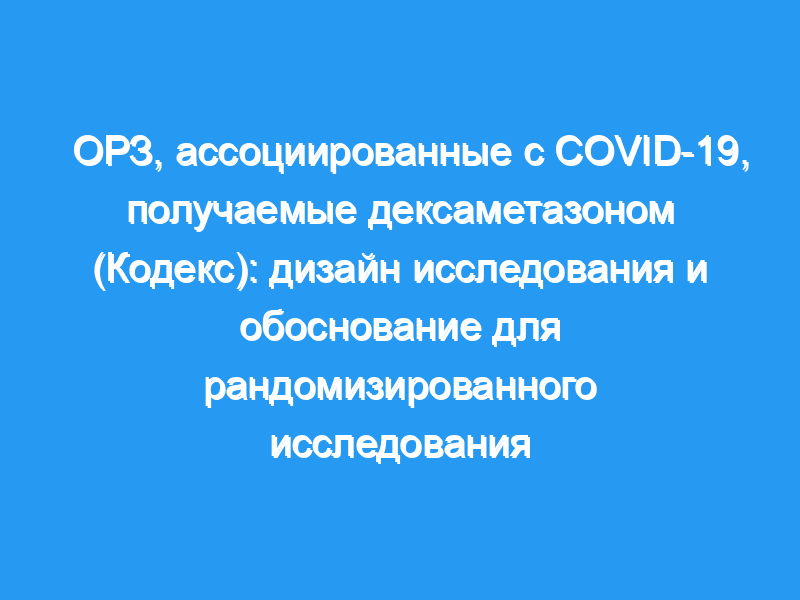 Инфекция, вызванная коронавирусом 2 тяжелого острого респираторного синдрома (SARS-CoV-2), распространяется по всему миру и считается пандемией. Наиболее распространенным проявлением инфекции SARS-CoV-2 (коронавирусная болезнь 2019 года — COVID-19) является вирусная пневмония с различной степенью нарушения дыхания, и до 40% госпитализированных пациентов могут развить острый респираторный дистресс-синдром. В нескольких клинических испытаниях оценивалась роль кортикостероидов при остром респираторном дистресс-синдроме, не связанном с COVID-19, с противоречивыми результатами. Мы разработали исследование для оценки эффективности раннего внутривенного введения дексаметазона на количество дней жизни и отсутствия искусственной вентиляции легких в течение 28 дней после рандомизации у взрослых пациентов с умеренным или тяжелым острым респираторным дистресс-синдромом из-за подтвержденного или вероятного COVID-19.