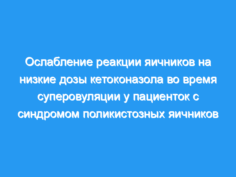 Крупный центр третичной медицинской помощи. Пациент(ы): Восемнадцать пациентов с СПКЯ, перенесших суперовуляцию гМГ с кетоконазолом или без него. Вмешательство (вмешательства): Фиксированная доза гМГ была начата на 5-9-й день цикла в обоих циклах исследования. Дальнейшую коррекцию гМГ проводили в соответствии с уровнями Е2 в сыворотке крови и фолликулярными измерениями. Кетоконазол вводили в одном из циклов по двум протоколам. Основные показатели результата: уровни E2 и P в сыворотке крови, количество фолликулов, частота наступления беременности и развитие синдрома гиперстимуляции яичников. Результат(ы): Хотя в циклах с кетоконазолом требовались более высокие суточные дозы hMG по сравнению с циклами без препарата, пиковые уровни E2 были значительно ниже в циклах с кетоконазолом. Хотя количество свинцовых фолликулов не различалось между обработками, добавление кетоконазола значительно уменьшало количество гиперстимулированных циклов. Следовательно, частота отмены резко снизилась, что привело к более высокому показателю беременности на одну пациентку в протоколах приема кетоконазола. Заключение(ы): Использование очень низкой дозы кетоконазола во время индукции овуляции эффективно ослабляет стероидогенез в яичниках у пациенток с СПКЯ. Этот эффект может служить дополнительным средством для лучшего контроля реакции яичников у женщин, склонных к гиперстимулированным циклам.