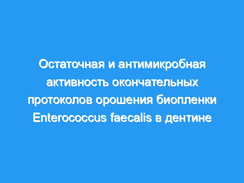 Для контроля инфекции дентина и задержки повторного инфицирования корневого канала желательно использовать растворы для орошения корневых каналов, обладающие антимикробной активностью и длительной остаточной активностью. Целью данного исследования была оценка остаточной антимикробной активности и способности уничтожать биопленку Enterococcus faecalis различных растворов для орошения, отдельно и в комбинации, в дентин-объемном тесте.