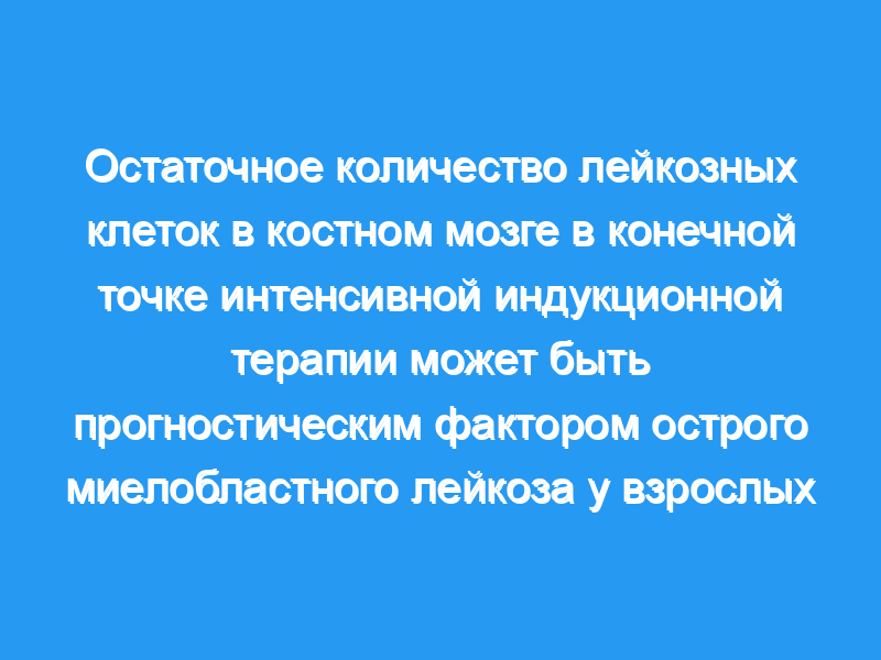 Мы пришли к выводу, что количество остаточных лейкозных клеток в костном мозге в конце точка интенсивной индукционной терапии является ценным прогностическим фактором для взрослых, получающих ориентированную на ответ индивидуальную индукционную терапию ОМЛ.