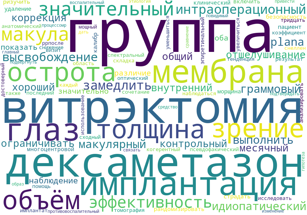 В это рандомизированное клиническое многоцентровое исследование были включены 60 глаз из 60 псевдофакических глаз с идиопатической макулярной складкой. Тридцати глазам была выполнена 25-граммовая витрэктомия pars plana и отшелушивание внутренней ограничивающей мембраны (“Контрольная группа”), тогда как 30 глазам была выполнена 25-граммовая витрэктомия pars plana и отшелушивание внутренней ограничивающей мембраны в сочетании с имплантацией дексаметазона (“Группа DEX”). Остроту зрения с наилучшей коррекцией исследовали с использованием коэффициента остроты зрения Снеллена. Анатомические результаты (толщина ямки и общий объем макулы) анализировали с помощью оптической когерентной томографии в спектральной области.