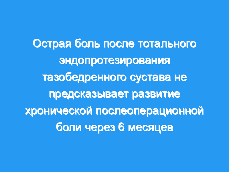 Ни максимальная острая боль, вызванная движением, ни какой-либо другой измеренный фактор не предсказывали наличие CPSP через 6 месяцев. Необходимы дальнейшие исследования для выявления факторов риска развития CPSP после тотального эндопротезирования тазобедренного сустава.