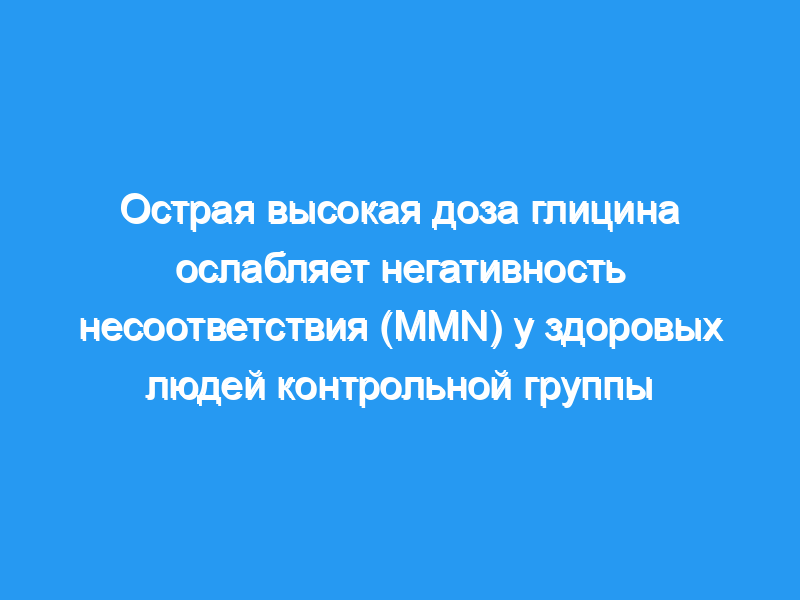 Обоснование: Шизофрения обычно ассоциируется с нарушениями в обнаружении изменений до внимательного внимания, что проявляется снижением негативности несоответствия (MMN). Нейрохимическая основа MMN была связана с функцией рецептора N-метил-D: -аспартата (NMDA). Глицин усиливает функцию NMDA-рецептора за счет стимуляции глицин-модулирующего участка NMDA-рецептора и, как было показано, эффективно уменьшает негативные симптомы при шизофрении. Однако ни в одном исследовании не изучалось возможное влияние высоких доз глицина на MMN. Кроме того, физиологические последствия введения высоких доз глицина субъектам с нормальной функцией NMDA-рецептора неизвестны.