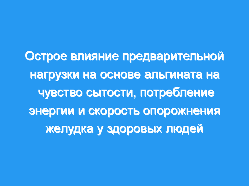 Потребление предварительной нагрузки альгината ЛЖ вызывало значительно меньшее (на 8,0%) потребление энергии, чем напиток плацебо (Р = 0,040) при следующем обеденный прием пищи, без различий в ощущении сытости или концентрации парацетамола.