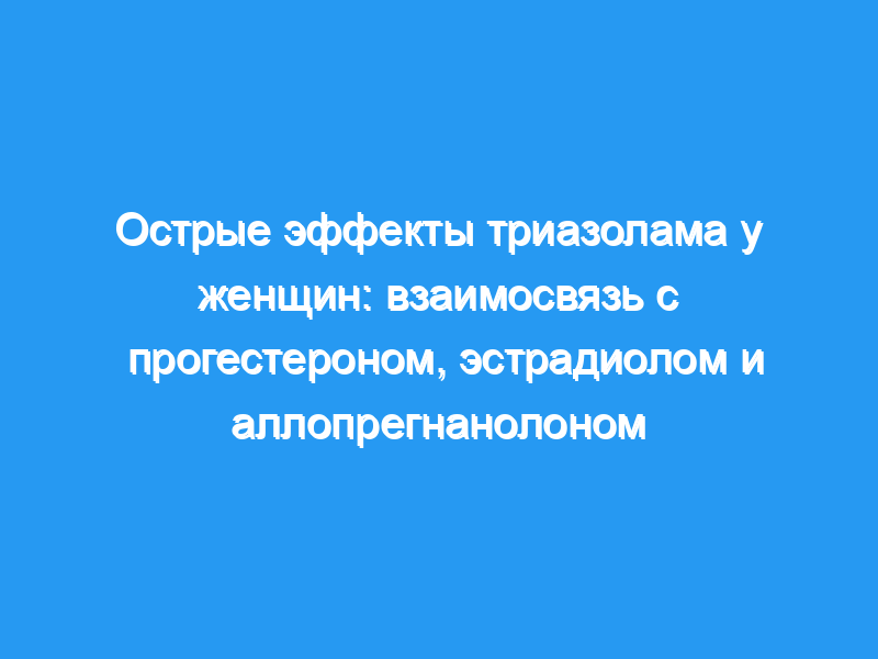 В настоящем исследовании изучалась взаимосвязь между эстрогеном, прогестероном и метаболитом прогестерона, аллопрегнанолоном, и влиянием острой дозы триазола на настроение и работоспособность.