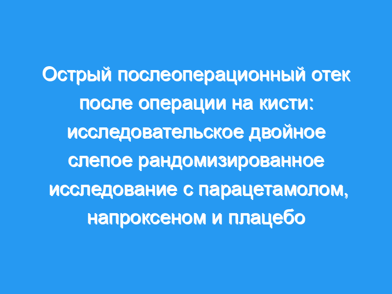Мы пришли к выводу, что напроксен может оказывать клинически значимое влияние на отек при использовании при незначительных операциях на руке, в отличие от парацетамола.