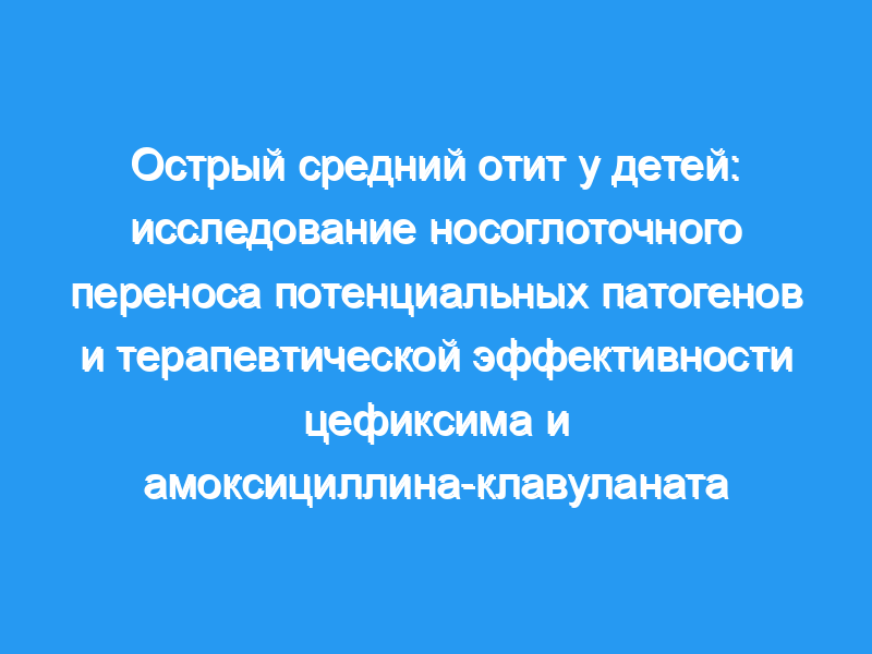 Мы провели крупное многоцентровое рандомизированное открытое исследование по всей Франции, в котором сравнивались эффективность и безопасность суспензии цефиксима (8 мг/кг/сут, внутривенно, в течение 10 дней) и суспензии амоксициллина-клавуланата (80 мг/кг/сут, т.внутривенно, в течение 10 дней) у 510 детей (в возрасте от 6 до 36 месяцев) с острым средним отитом.