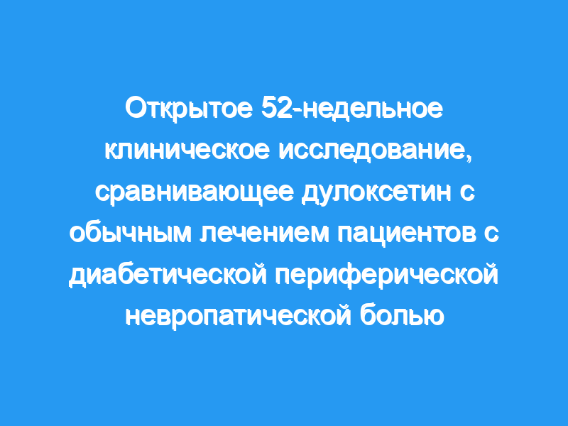 Оценить безопасность дулоксетина в фиксированной дозе 60 мг два раза в день (BID) в течение 52 недель и сравнить дулоксетин с обычной терапией при лечении пациентов с диабетической периферической невропатической болью (DPNP). Дизайн и вмешательства: Пациенты, которые завершили 13-недельный рандомизированный, двойной слепой, плацебо-контролируемый период острой терапии, были случайным образом переведены в соотношении 2:1 на терапию дулоксетином в дозе 60 мг БИД (N = 197) или обычное лечение (N = 96) еще на 52 недели. Пациенты: В исследование были включены амбулаторные пациенты >, or =18 лет с диагнозом ДПНП средней и тяжелой степени, вызванный диабетом 1 или 2 типа.