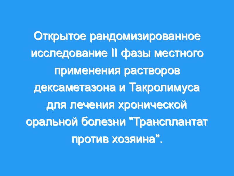 Целью данного исследования была оценка безопасности и эффективности однократного применения дексаметазона или такролимуса для местного применения в качестве первой линии лечения симптоматической оральной хронической болезни «трансплантат против хозяина» (cGVHD). Это было проспективное, одноцентровое, открытое рандомизированное исследование II фазы с участием пациентов с симптоматической пероральной cGVHD без предварительной местной терапии.