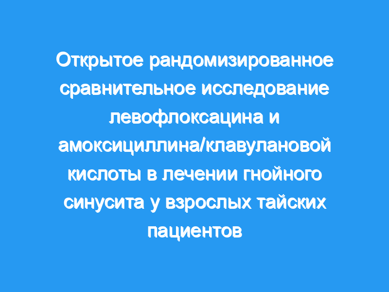 Целью исследования было сравнить клиническую эффективность и бактериологический ответ левофлоксацина и амоксициллина/клавулановой кислоты (ко-амоксиклав) при лечении гнойного гайморита.