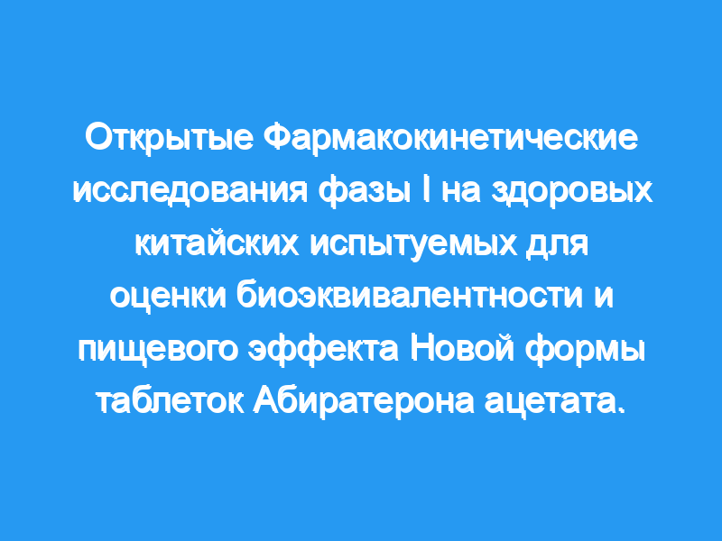 Таблетки абиратерона ацетата (I) (N-AbA) — это новая таблетка, приготовленная совместно с усилителем абсорбции N-(8-[2-гидроксибензоил] амино) каприлатом натрия (SNAC). Целью данного исследования было сравнение фармакокинетики, биоэквивалентности, безопасности и пищевых эффектов N-AbA с эталонным препаратом ZYTIGA® (R-AbA) у здоровых китайских мужчин. Пациенты и методы: Это исследование было проведено в трех частях. Часть I представляла собой открытое исследование с повышением дозы, проведенное на 16 здоровых китайских мужчинах, Часть II представляла собой рандомизированное открытое перекрестное исследование биоэквивалентности однократной дозы 2 × 4, проведенное на 36 испытуемых, Часть III представляла собой рандомизированное перекрестное исследование 3 × 3, проведенное на 24 добровольцах для изучения влияние пищи на фармакокинетику N-AbA.