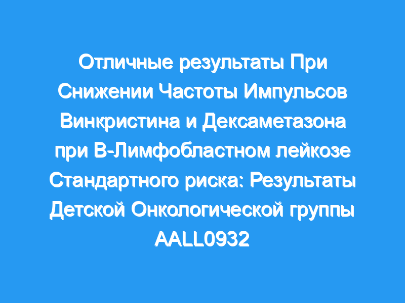 0NCI-SR AR B-ВСЕ, кто получал VCR/DEX12, имели выдающиеся результаты, несмотря на получение одной трети импульсов винкристина/дексаметазона, ранее использовавшихся в качестве стандарта лечения в исследованиях Детской онкологической группы (COG). Более высокая начальная доза MTX 40 мг/м2/неделя не улучшала результаты по сравнению с 20 мг/м2/неделя. Уменьшенная частота импульсов винкристина /дексаметазона была включена в передовые исследования COG B-ALL, чтобы уменьшить бремя терапии для пациентов и их семей.