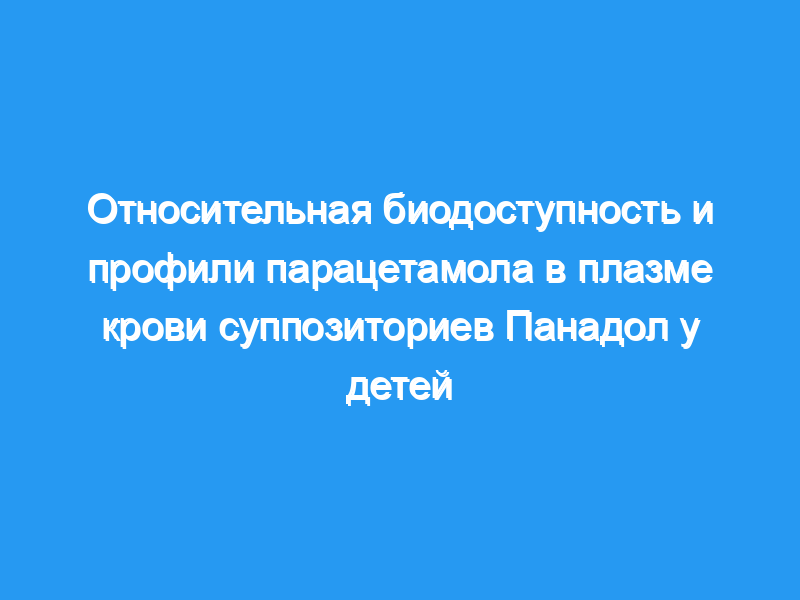Для определения относительной биодоступности и профилей концентрации парацетамола в плазме крови после введения запатентованной формы суппозиториев с парацетамолом послеоперационным детям. Методология и результаты: Исследование А — у восьми детей, перенесших незначительную операцию, были взяты образцы крови после ректального введения суппозиториев парацетамола в дозе 250 мг или 500 мг в один день и эквивалентной пероральной дозы на следующий день. Средняя доза 13 мг/кг давала среднюю Cmax (Tmax) 7,7 мг/л (1,6 ч) и 4,9 мг/л (2,0 ч) после перорального и ректального введения, соответственно. Средняя относительная ректальная биодоступность составила 78% (95% доверительный интервал 55-101%). Исследование В-20 детей, перенесших тонзиллэктомию и/или аденоидэктомию, были рандомизированы для получения послеоперационной дозы 500 мг парацетамола либо в виде 2 х 250 мг жидкого наполнителя, либо 1 х 500 мг твердого воска в виде суппозитория Панадол. Средняя доза 25 мг/кг обеспечивала средние максимальные концентрации парацетамола в плазме 13,2 мг/л и 14,5 мг/л через 2,1 и 1,9 ч для твердых и жидких суппозиториев, соответственно. Константы скорости абсорбции и площади под кривыми не предполагали различий в скорости или степени абсорбции между двумя препаратами.