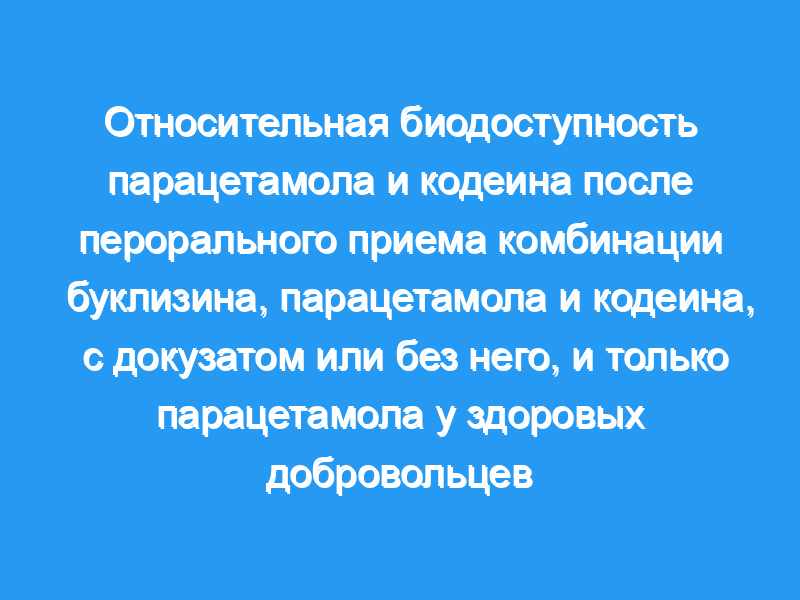 Рандомизированное двойное слепое перекрестное исследование было проведено на 10 здоровых добровольцах, чтобы выяснить, является ли включение увлажняющего средства докузата натрия (10 мг) в комбинированный пероральный препарат («Мигралеве») с буклизина гидрохлоридом (6,25 мг), кодеинфосфатом (8 мг) и парацетамолом (500 мг) не оказывало какого-либо влияния на биодоступность анальгетика.