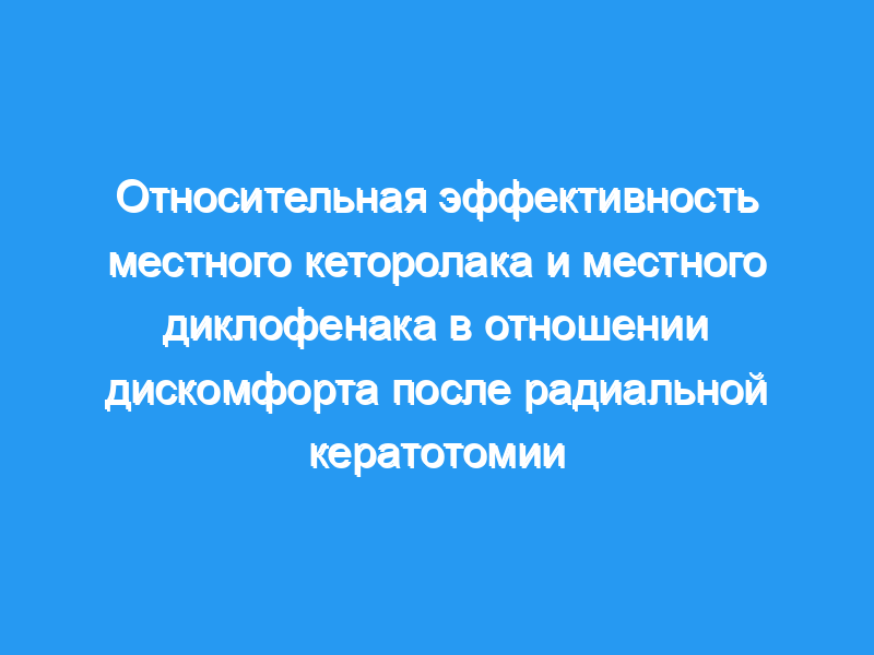 Были проведены два проспективных рандомизированных исследования с двойной маскировкой, в которых оценивался обезболивающий эффект местных глазных капель после радиальной кератотомии (РК). В одном исследовании из 117 последовательных начальных процедур РК сравнивали топический кеторолак (Акулар) с топическим диклофенаком (Вольтарен), а в другом исследовании из 23 последовательных начальных процедур РК сравнивали топический кеторолак с контрольным препаратом (ГипоТеарс). Кеторолак для местного применения был значительно более эффективным, чем контрольная группа, но существенно не отличался от диклофена для местного применения.