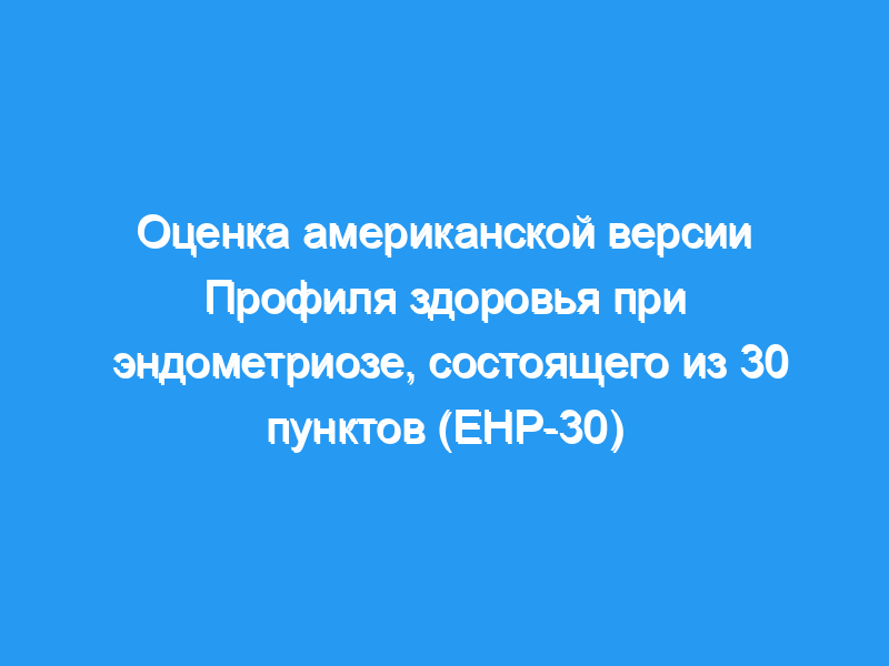 Представленные здесь данные свидетельствуют о том, что EHP-30 является достоверным и надежным показателем, который может быть надлежащим образом и осмысленно использован в исследованиях, в которых участвуют респонденты из США. США.