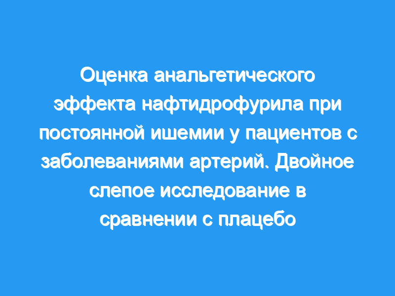 Патофизиологические механизмы, лежащие в основе анальгетического эффекта нафтидрофурила, привели нас к оценке эффективности этого лечения.