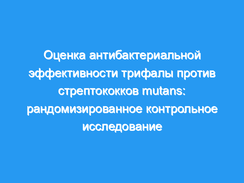 Трифала — это аюрведический препарат с известным антимикробным действием. Это исследование было проведено для оценки антибактериальной эффективности трифалы против стрептококков mutans в слюне по сравнению с хлоргексидином «золотого стандарта».