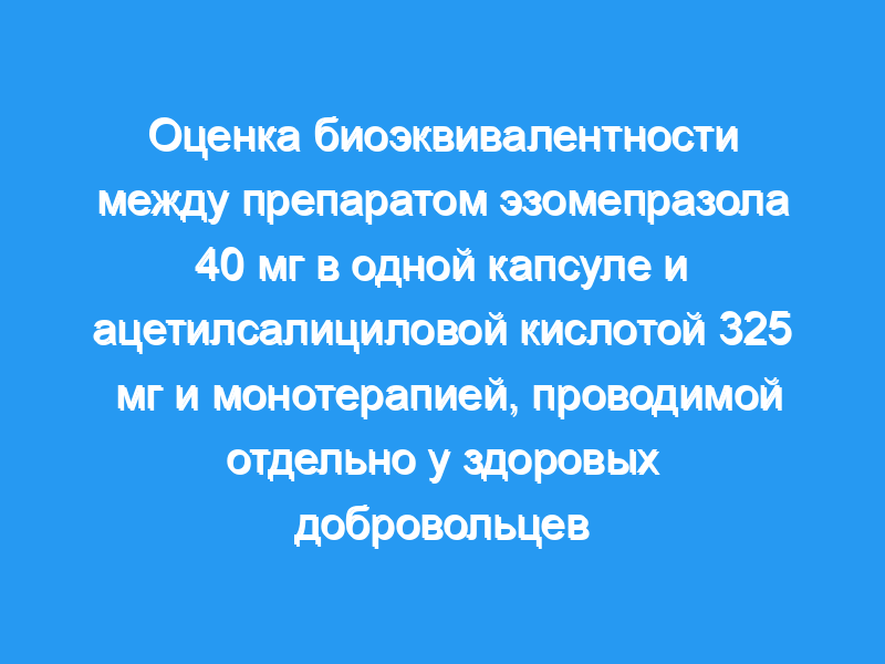 Целью данного исследования было изучение биоэквивалентности однократной пероральной дозы эзомепразола 40 мг и ацетилсалициловой кислоты 325 мг в виде одной капсулы по сравнению с компонентами, назначаемыми в виде отдельных монотерапий.